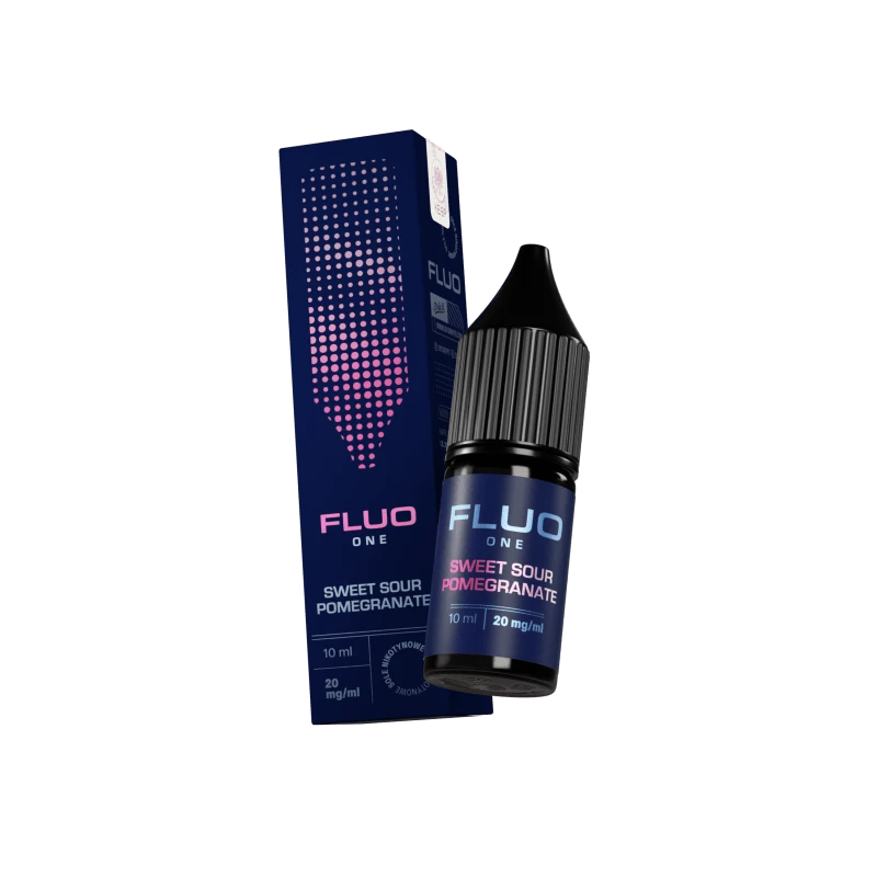Liquid FLUO One Salt 10 ml Sweet Sour Pomegranate to płyn do e-papierosów z solą nikotynową o aromacie inspirowanym owocem granatu. Profil aromatyczny łączy nuty słodkie i lekko kwaskowe, charakterystyczne dla tego owocu, tworząc owocową kompozycję o wyraźnym charakterze.