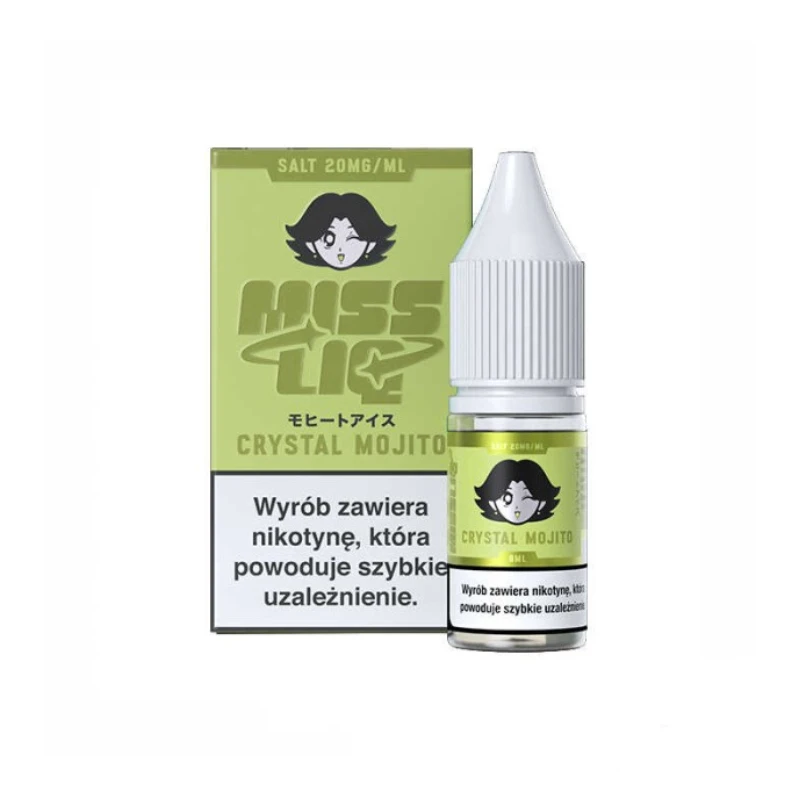 Liquid MISS LIQ Salts Crystal Mojito inspirowany jest aromatem popularnego napoju z limonką i miętą. Wyraźna cytrusowa nuta limonki łączy się z chłodnym, miętowym akcentem, tworząc świeży i orzeźwiający profil smakowy. Kompozycja jest lekka, cytrusowa i dobrze zbalansowana, dzięki czemu może przypaść do gustu użytkownikom preferującym rześkie aromaty. Produkt dostępny jest w butelce 8 ml i zawiera 20 mg/ml soli nikotynowej.