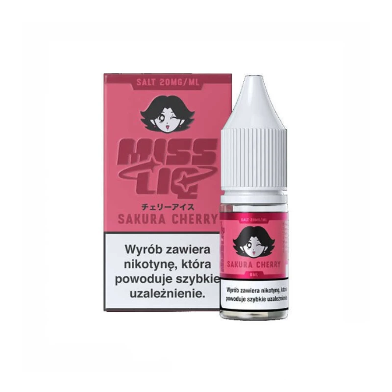 MISS LIQ Salts Sakura Cherry to liquid do e-papierosa inspirowany smakiem słodkich wiśni z delikatnym kwiatowym akcentem. Aromat dojrzałych owoców tworzy wyraźny, owocowy profil smakowy, który uzupełnia subtelna nuta inspirowana kwiatem sakury. Kompozycja jest łagodna i dobrze zbalansowana.