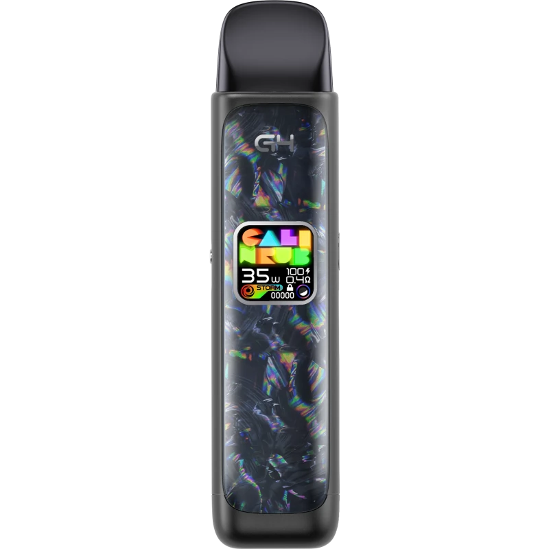 Caliburn G4 oferuje dwa tryby działania — Storm oraz Waves — pozwalające na zmianę charakterystyki pracy urządzenia bez ingerencji w ustawienia mocy. Wybrany tryb prezentowany jest na kolorowym wyświetlaczu o przekątnej 0,85 cala, który pokazuje również poziom baterii, aktualną moc, oporność grzałki oraz licznik zaciągnięć.