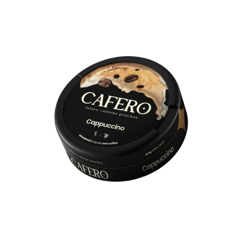 Cafero Cappuccino to puszka z 20 woreczkami o smaku kawy z aksamitną nutą mlecznej pianki. Każdy woreczek to 80 mg czystej kofeiny — tyle, co filiżanka kawy. Bez cukru, bez kalorii, bez kompromisów. Dyskretnie, wygodnie i zawsze pod ręką, kiedy potrzebujesz pobudzenia i koncentracji.